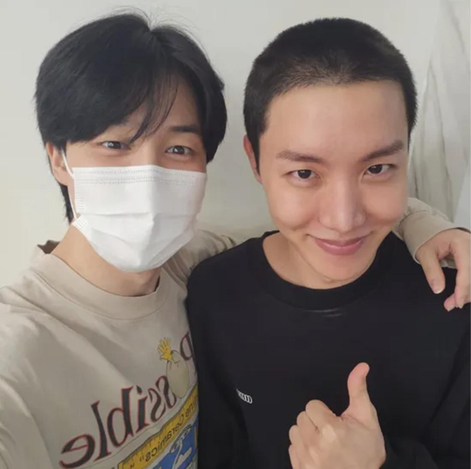 In another picture posted on Weverse, bandmate Jimin was seen posing with J-Hope and his new hairdo.