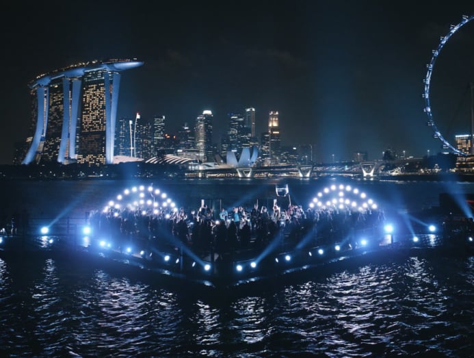 In the evening, Turner, Banta and the rest of the cast and crew gathered at an event hall at Marina Bay Sands before shooting with the band at the floating platform.