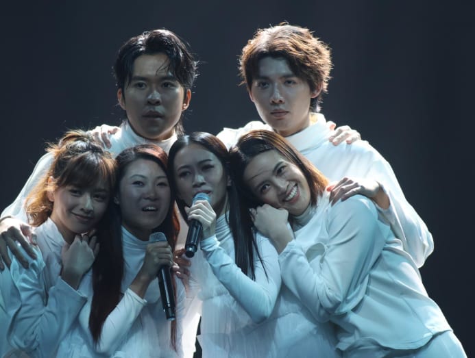 Visually impaired performing artiste Claire Teo and local actress Bonnie Loo sang Jolin Tsai’s hit I, as fellow local artistes He Ying Ying, Herman Keh, Tay Ying and Jensen Wang accompanied the performance with a dance number.