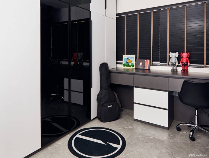 The original master bedroom, which is the bigger of the two bedrooms and has an ensuite bathroom, was converted to his study and walk-in wardrobe and the adjoining wall fitted with a sliding door to connect the rooms.