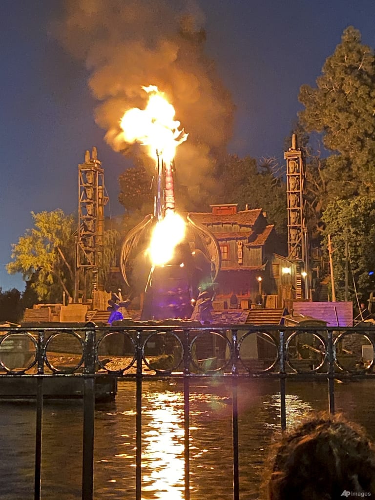 Dragon bursts into flames during Disneyland's popular Fantasmic! show in California