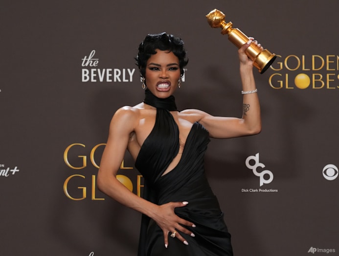 (From left) US film producer Sara Murphy, US actress Teyana Taylor, US filmmaker Paul Thomas Anderson and US actress Chase Infiniti, winners of the Best Motion Picture - Musical or Comedy Award for One Battle After Another, pose in the press room during the 83rd annual Golden Globe Awards at the Beverly Hilton hotel in Beverly Hills, California, on Jan 11, 2026. (Photo: Etienne Laurent/AFP)