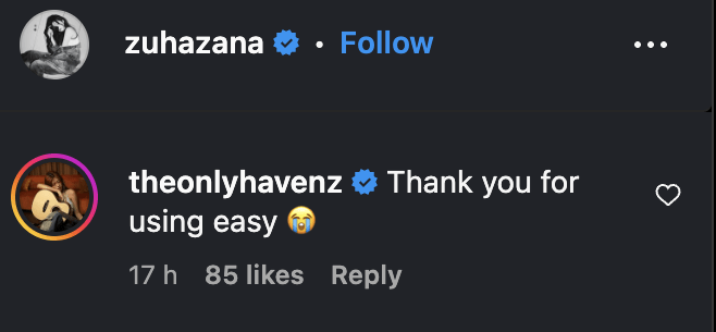 Haven also made a separate Instagram Story where she wrote: "Thank you [Kazuha] for loving my song Easy."