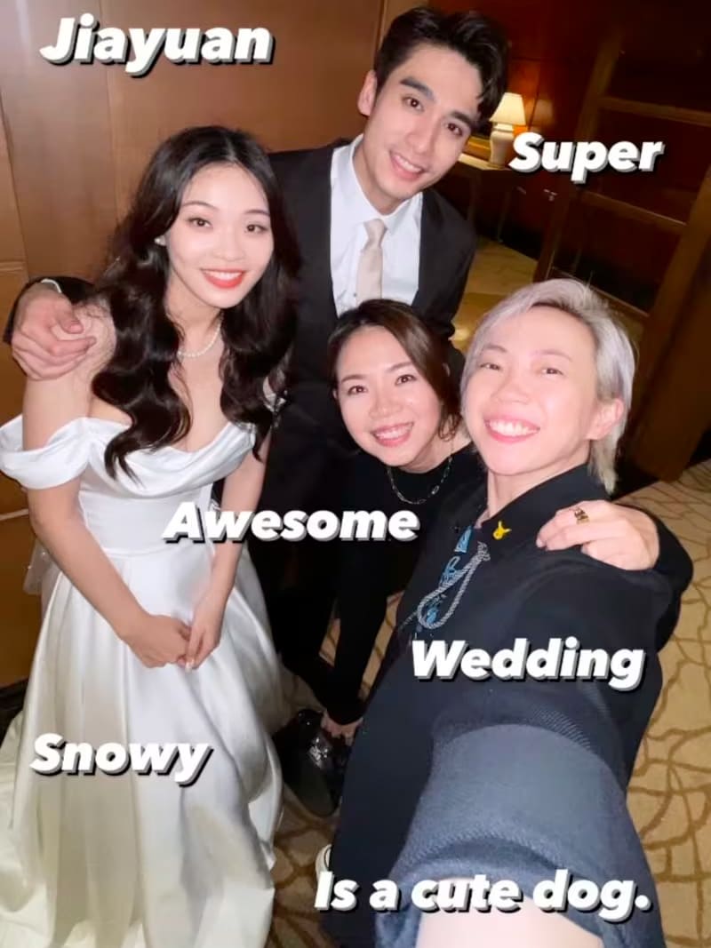 These include using the meme-iest fonts for his powerpoint slides, a surprise inclusion of a photo of Houren from years ago, and the cutest and longest wedding hashtag we’ve ever seen: #Joelandjiayuansuperawesomeweddingsnowyisacutedog.