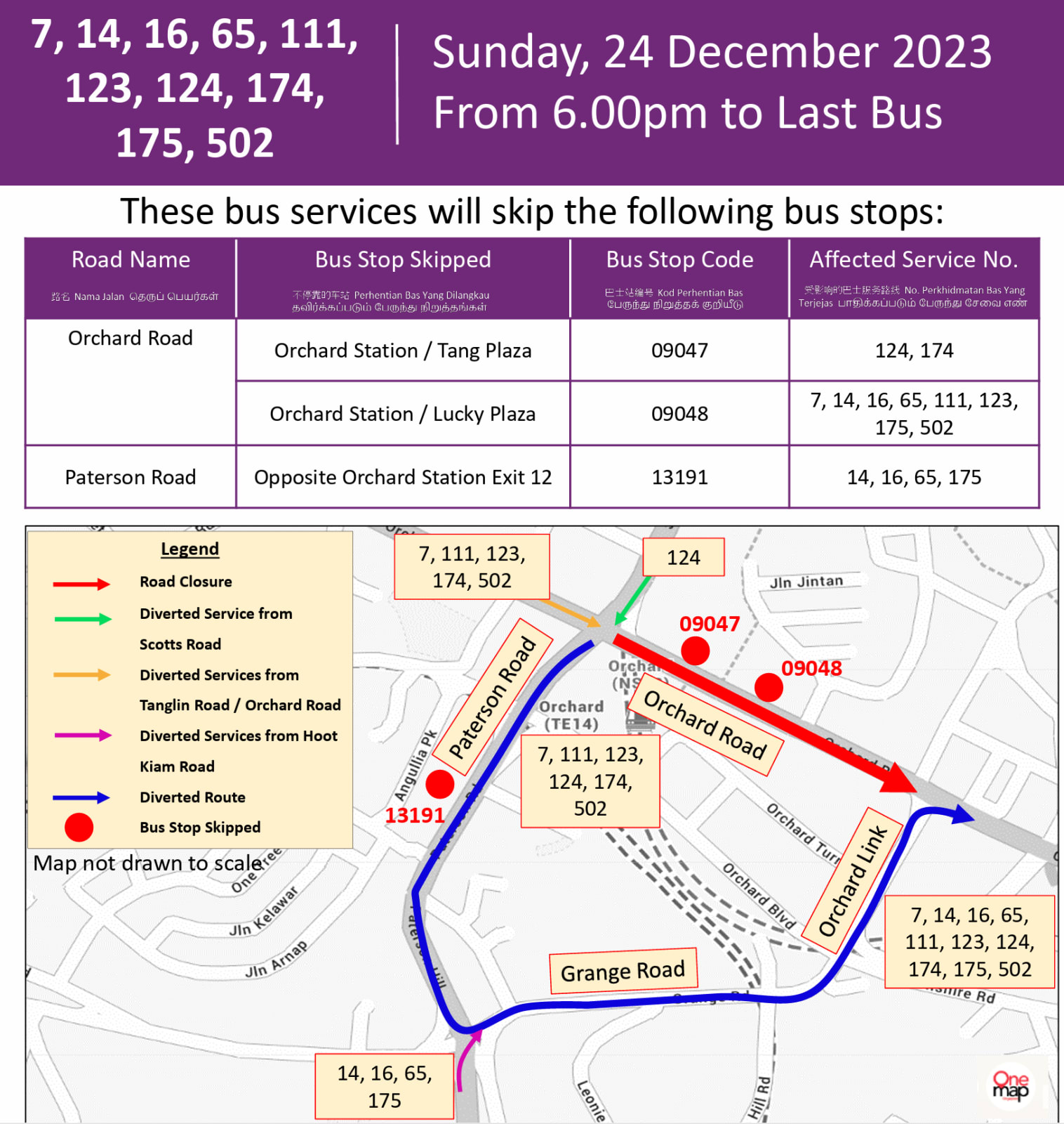 Furthermore, SBS Transit has announced that their bus services will skip the following stops: