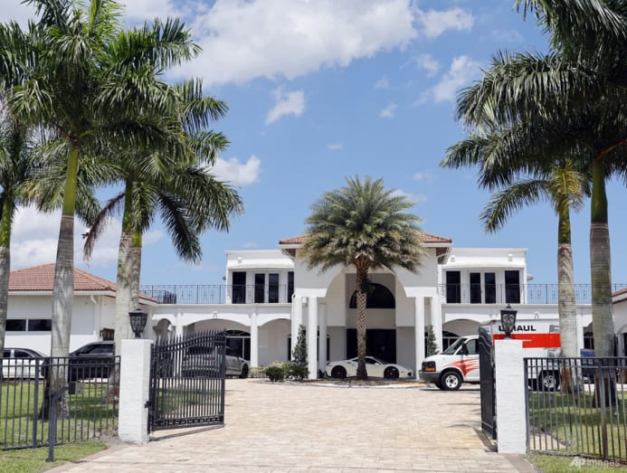 Florida Department of Corrections records show he is currently on two years probation for trafficking stolen property. Reporters at the home could see authorities filling a loading van with goods. The mansion was surrounded by expensive sports cars.