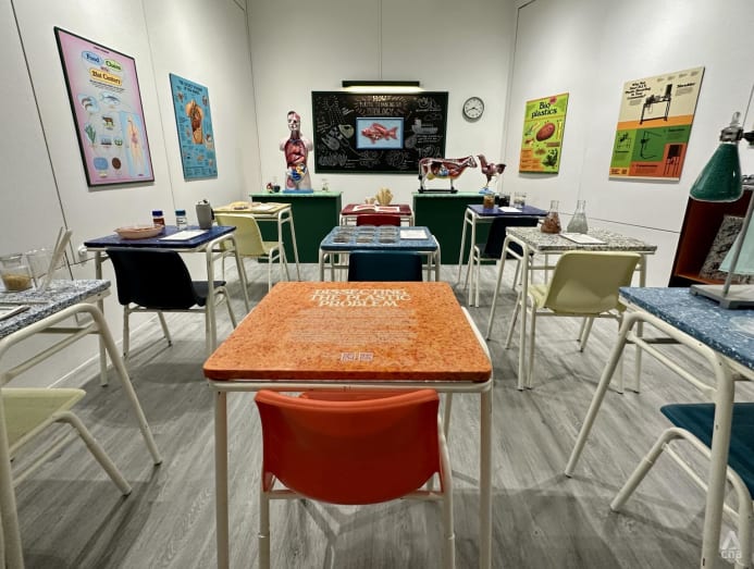 The free Singapore Design Week attraction disseminates messages about sustainability through its schoolroom conceit. But besides the obvious, what other lessons can we take away while walking through its pedagogic hallways?