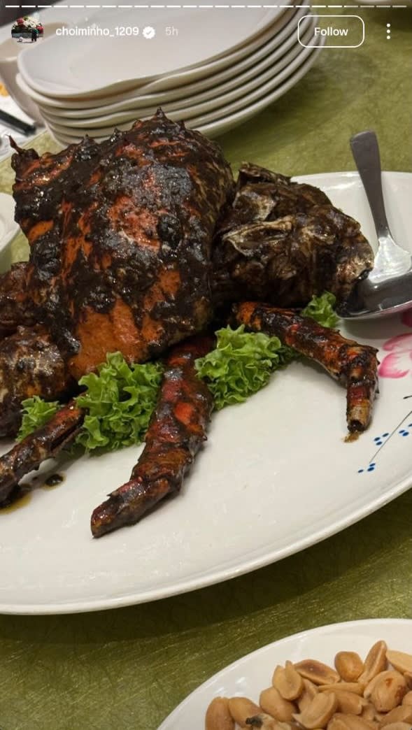He also added that he intended to eat chilli crab and black pepper crab after the interview – a promise that he clearly kept as hours later, Minho posted a spread featuring both dishes on his Instagram page.