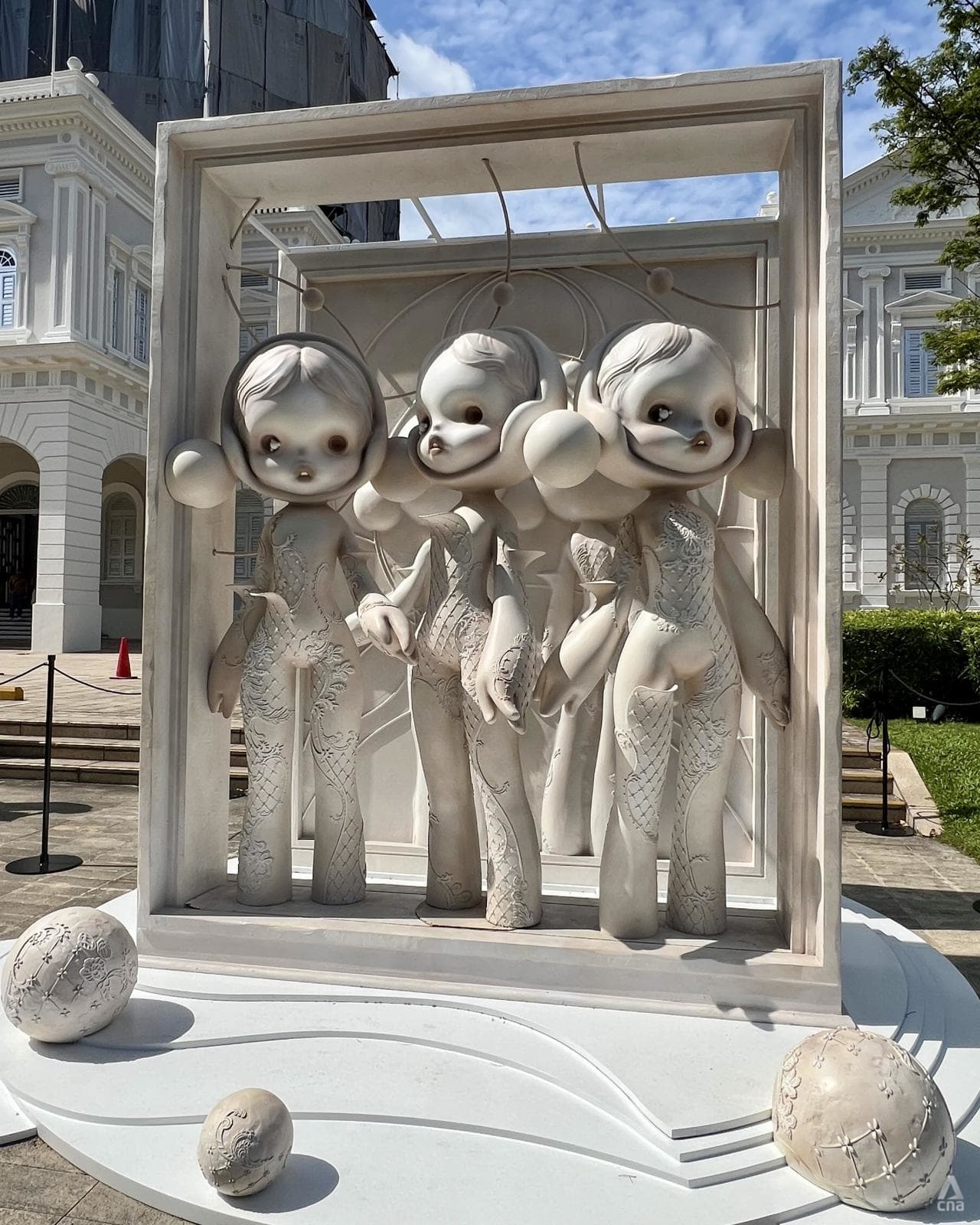 Skullpanda installation outside the National Museum of Singapore for the Skullpanda Cage-Uncage Showcase, which runs from Dec 12, 2025 to Feb 22, 2026. (Photo: CNA/Lindsay Jialin)