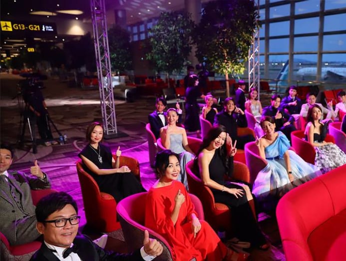 And, giving new meaning to "runway fashion", the stars walked the red carpet with a Singapore Airlines Airbus A350-900 as their backdrop.
