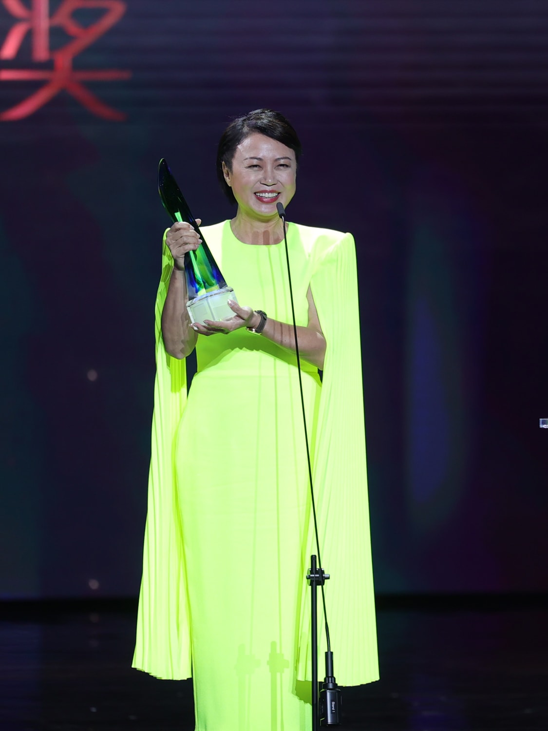 The Best Supporting Actress award went to Xiang Yun for her performance in the same drama as an elderly woman with dementia. It was the second award the actress picked up that night, as she was also awarded the Evergreen Artiste award for the fourth time, an award she was clearly more prepared to receive; she dedicated it to her son, actor Chen Xi, who is preparing to leave the industry this August to study arts management in the UK.