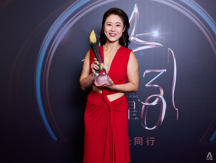 Lim, who marked her return to Singapore after spending the last 10 years in Taiwan by walking the red carpet with her husband and two children, teared up as she talked about her late mother in her acceptance speech, saying, “The person I’ve missed the most for the last 35 years – do you see this? I love you.” She added, “The best award is not in my hands but in my heart.”