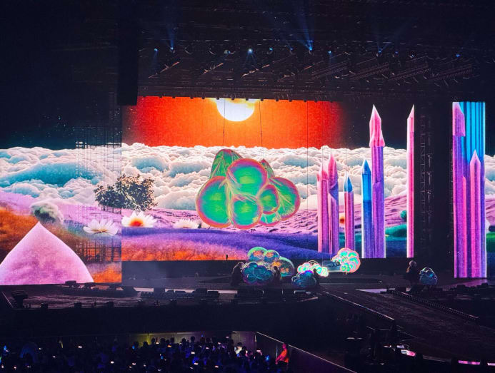 Sun shared that this was the biggest stage ever built in the Singapore Indoor Stadium – a fitting setup for such a milestone concert. Spanning the width of the stage were three large projection panels that played a central role in the storytelling.