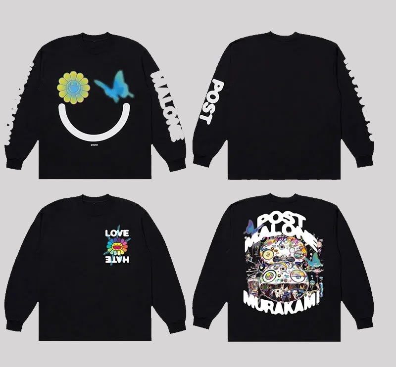 Murakami created various artworks and products, featured in a pop-up store in Los Angeles, during Malone’s tour for his latest album, Twelve Carat Toothache.