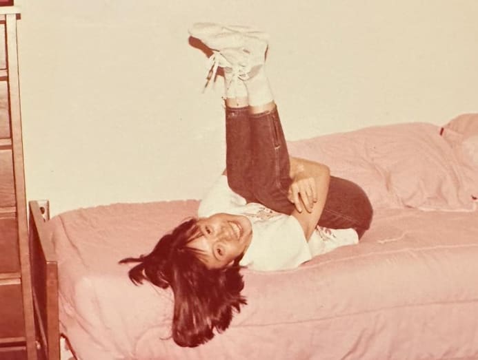 Singaporean actress Tan Kheng Hua at age 60 (left) and at 23 years old (right) just about to graduate from Indiana University and travelling in the US. (Photos: Tan Kheng Hua)