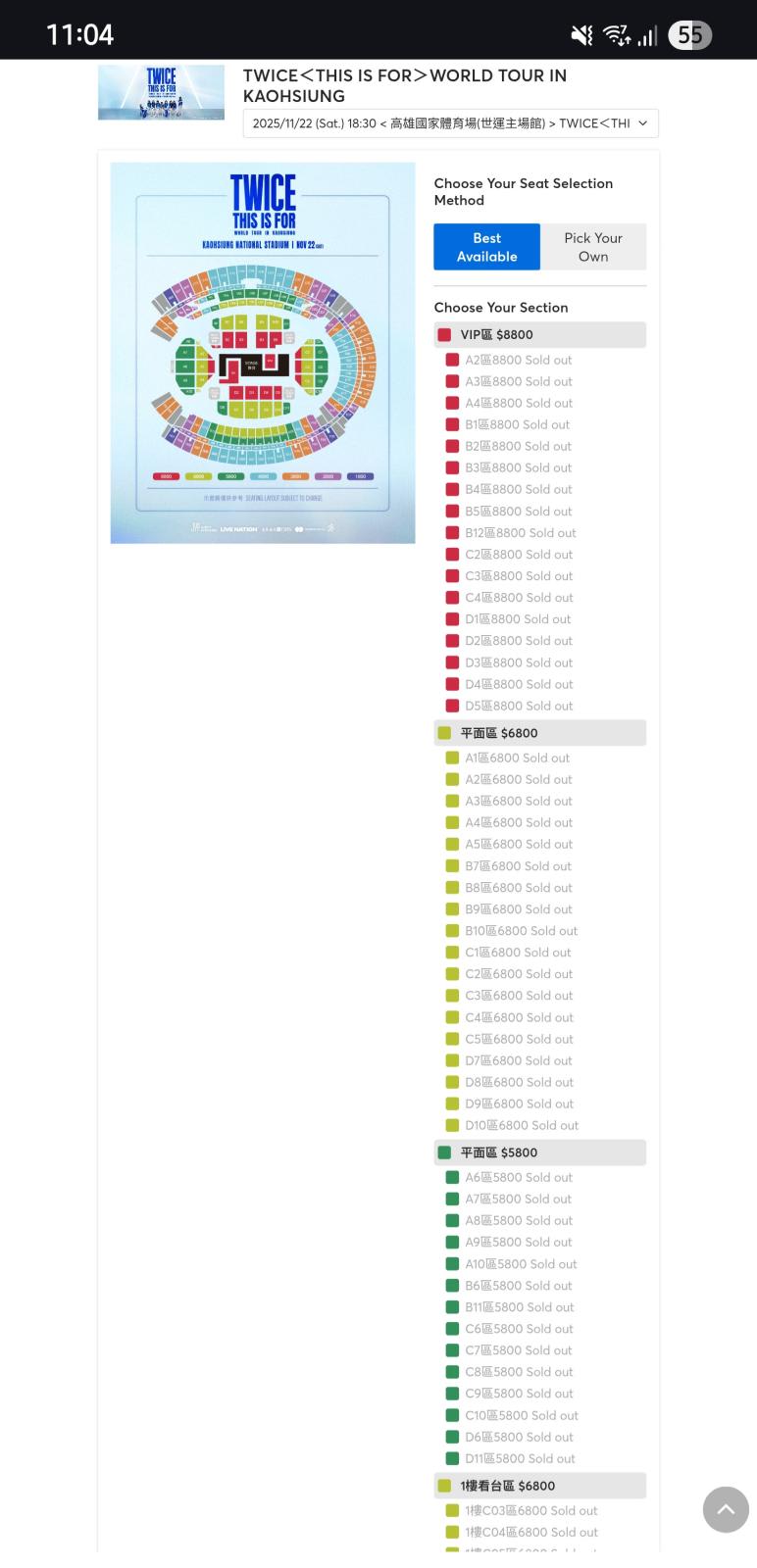 Twice's Taiwan concert is set to take place at Kaohsiung National Stadium on Nov 22. Presale sessions for the concert took place on Aug 26 and 27, with general sales commencing on Aug 28.