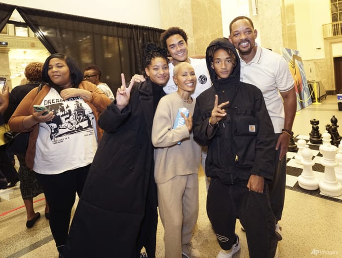 Smith’s appearance with their two children, Jaden and Willow, and his son Trey Smith, was apparently a surprise for Pinkett Smith. It came at the end of a talk about her book, Worthy. Pinkett Smith said the family, including her aunt and uncle and Will Smith’s mother and sister, was in town to celebrate the 70th birthday of her mother, Adrienne Banfield-Norris, on Wednesday.
