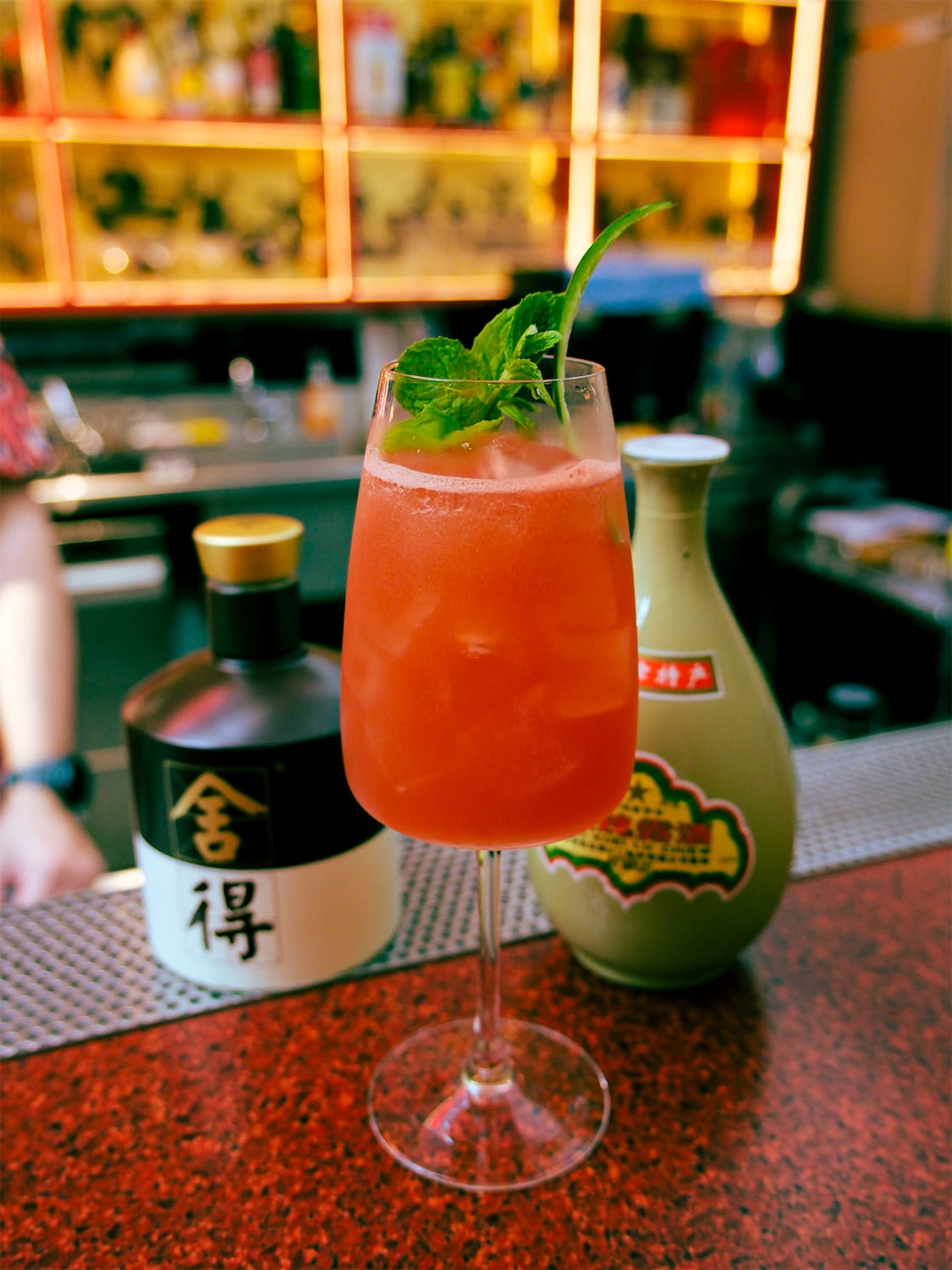 One ingenious concoction is Wo De Mei Ren (loosely translated to mean “my beautiful lady” in Mandarin) which is made with She De and Mei Gui Lu baijiu and layered with fresh watermelon, orange and lime. The naturally fruity tones of the spirit meld with the watermelon’s juicy sweetness, creating a bright sip with a refreshing finish.