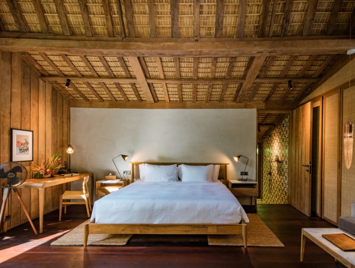 Inspired by its founder Martha Booke's own wellness journey, the intimate boutique resort located in Uluwatu aims to help guests forge new mind-body connections with just 10 luxuriously appointed gladaks (traditional Indonesian teak wood houses), transported with love from East Java and reassembled onsite. Each features Belgian blue stone bathroom counters and bathtubs uniquely placed in the bedroom, plus mosaic tiles and vintage-esque furnishings that evoke a rustic feel.