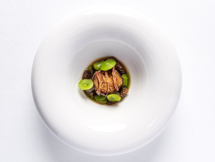 Fermentation traditions are honoured via a tangy combination of Ratchaburi pork trotter and fresh turmeric. A steamed offering, meanwhile, sees delicate Ranong squid elevated with the fragrant zest of som sa (bitter orange), calamansi, lime, and kaffir lime.