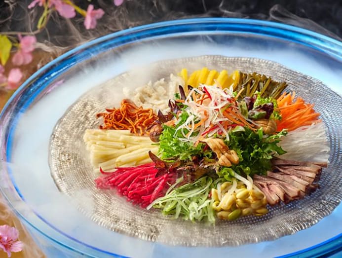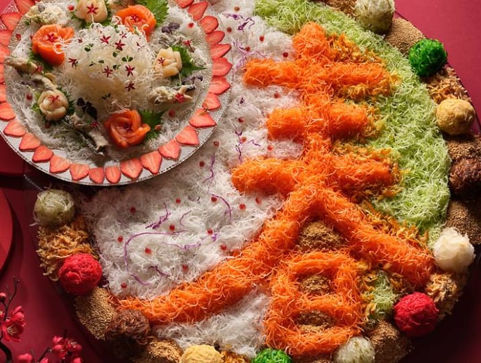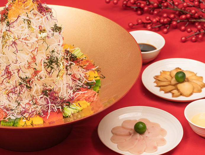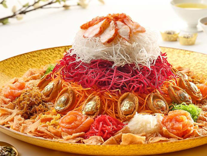 Get an auspicious start with the 60-inch Blossoms of Spring Prosperity Yu Sheng in the form of the Chinese character for “spring”, accompanied by Hokkaido scallops, salmon and crispy fish skin.