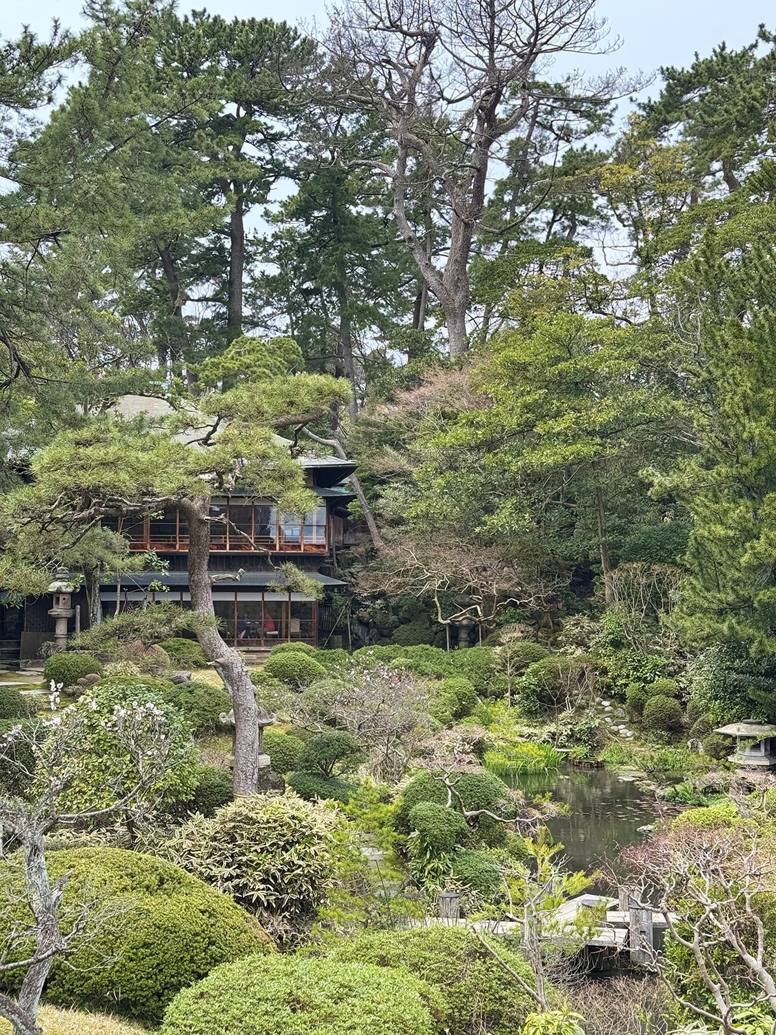 At Miyajima the following day, we climbed hillside paths festooned with cherry trees that created a floating white cloud of flowers hanging above ancient wooden shrines. The famous vermilion torii gate of Itsukushima Shrine appeared to hover on the water's surface, while in the nearby shopping streets, old machiya-style homes have been transformed into boutiques selling curry oyster buns and sweet red bean cakes. Not far from these lively thoroughfares, the massive unfinished timber library of Hokoku Shrine (Senjokaku), begun in 1587 but never completed, stands as a grand monument to interrupted ambition.
