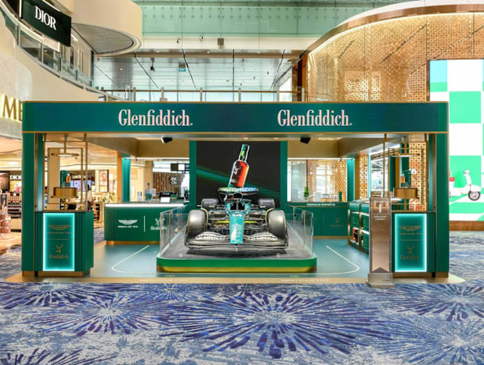 If you’re travelling into Singapore for race weekend (or just passing through in transit) via Changi Airport, drop by The Glenfiddich Race Experience at Terminal 3 (airside) for a peep at a full-scale Aston Martin F1 replica car set against a dramatic digital backdrop featuring imagery inspired by the Scottish Highlands. The pop-up, which runs till Oct 11, celebrates a new multi-year partnership struck this year between Glenfiddich and Aston Martin, and travellers can enjoy a curated selection of Glenfiddich Single Malt Scotch Whisky expressions at the tasting bar. This includes the exclusive-to-travel-retail Glenfiddich 19-Year-Old Limited Edition (S$214) bottling with Aston Martin, which can be purchased and personalised at the gifting station with complimentary bottle engraving and bespoke gifts with purchase.