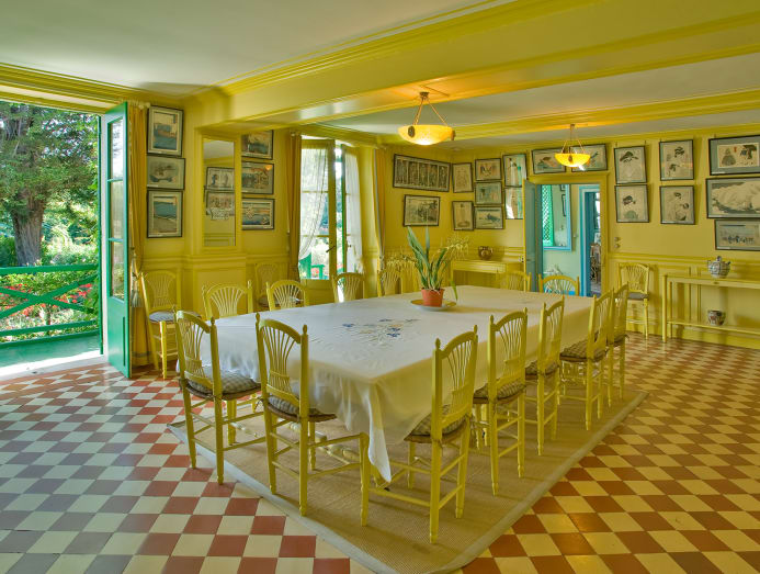 The house is as vibrant as his Impressionist paintings: Green shutters, a yellow dining room, floral prints in every corner. But it’s the spell-binding gardens that leave the deepest impression. Outside the front door of the Clos Normand is a tumble of tulips, dahlias, roses and poppies arranged in painterly layers. Across the lane lies the Japanese water garden, where bamboo, weeping willows and the iconic lily pond appear just as they do in his work. Monet’s signature arched green bridge still stands, framed by blooms.