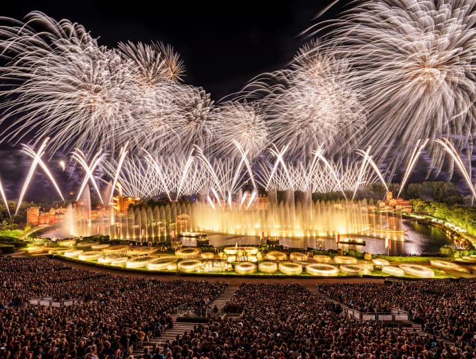 The largest production, La Cinescenie, takes place after dark on what is officially the world’s biggest stage. With more than 3,000 performers, 30,000 costumes, and a breathtaking mix of fireworks, drones and water choreography, it traces the journey of a fictional family through centuries of war, revolution and change.