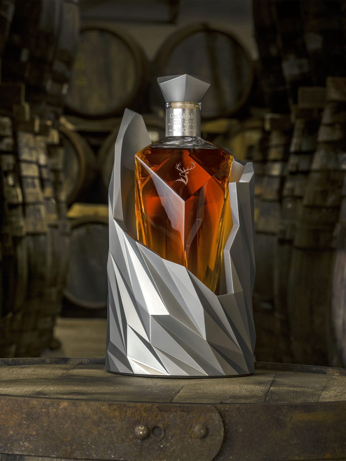 Only 1,600 decanters of the 40 Year Old have been produced, and each one comes with a sculptural container made from Jesmonite, a composite material popular among artists due to its ability to replicate a diverse range of textures and details. For this expression it resembles stone, with the intertwining veins recalling layers of strata.