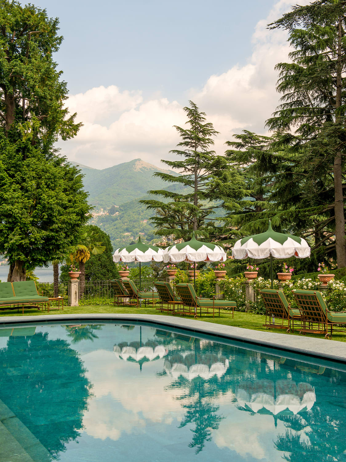 The old-world charm of restored frescoes, grand marble staircases and crystal chandeliers were captivating, and the modern upgrades, uncontrived. A new heated pool was carved out of the subterranean spa, offering comfortable swims in the cold seasons, and a former greenhouse was transformed into a colourful all-day summer bar next to an inviting pool flanked by loungers and parasols in white and green.
