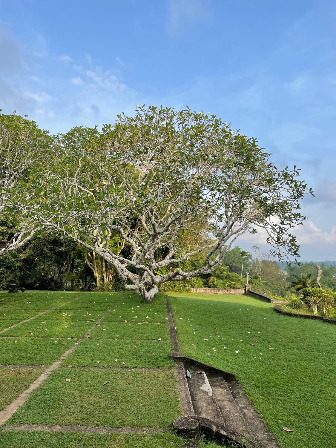 We pay our silent respects. The still quiet is broken only by the soft rustle of the Munamal’s leaves and distant birdsong somewhere in the dark emerald thickets. Overhead, a clear blue sky hangs like an inverted bowl, presaging a hot day and perhaps a late afternoon dip in the newly installed lap pool down the slope of the hill. It’s so peaceful here, we marvel, and, for just a moment, we wonder if we, too, might stay and never leave. Tomorrow can wait.