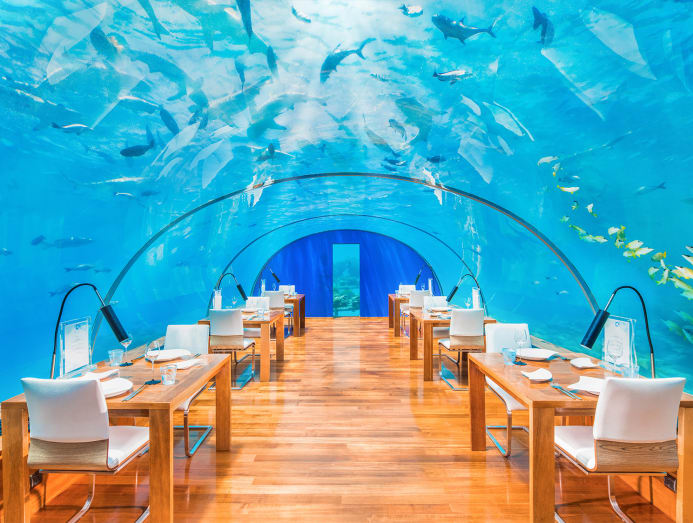 First underwater restaurant in the Maldives? Check. First undersea residence that has seen the likes of the Kardashians and Paris Hilton as guests? Conrad’s three-bedroom, two-level The Muraka, which costs from US$10,000 (S$13,750) a night, is the one. First to have an underground wine cellar, overwater villas and a spa with glass flooring? Check, check, check.