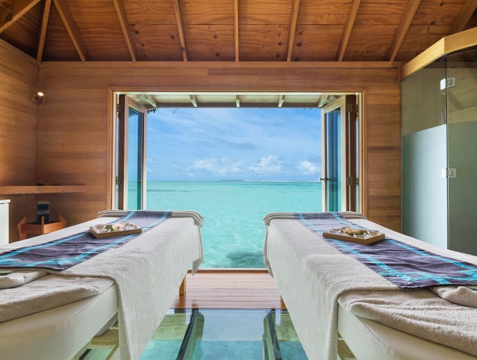 The two-bedroom Rangali Ocean Pavilion with Pool and the new Over Water Spa treatment rooms also have glass-panelled floors to ensure that no one misses out on any marine action even during a relaxing massage.