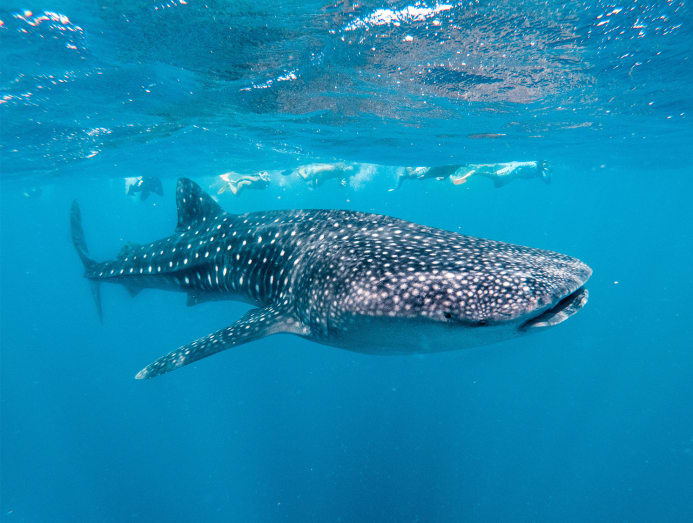 The excursion almost didn’t happen. There were cloudy skies with ominous dark clouds looming in the distance earlier that day. Our guides also explained that sighting a whale shark would be challenging given the lack of sunlight and poor water visibility.