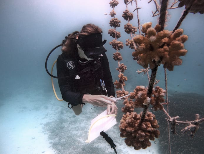 To ensure that all this beautiful reef life is preserved, the resort launched a coral regeneration programme in 2017. Early this year, coral lines made from ropes replaced the previous method of using metal frames. We played a small part by attaching coral fragments to a rope and accompanied marine biologist Samper to plant them in the house reef.