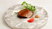 Singaporeans adore mala and bak kwa. So it was only a matter of time before someone thought to put them in a mooncake. That honour goes to the chefs at Resorts World Sentosa. Each mala mixed nuts mooncake with bak kwa (S$98 for a box of four) sees chopped bak kwa and crunchy mala mixed nuts suspended in a silky lotus paste. Meanwhile, the smoked dates and green tea snow skin mooncake (S$98, part of a box of eight snow skin mooncakes) is another unique creation tinged with hints of smoked Pu-er tea leaves and jujubes.
