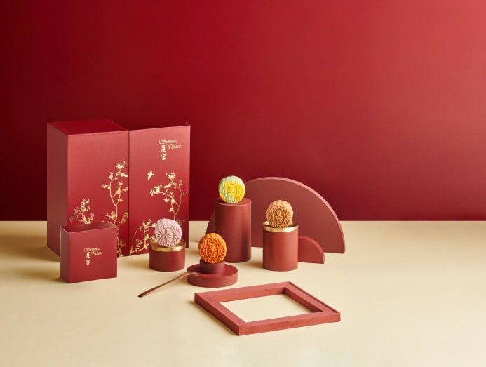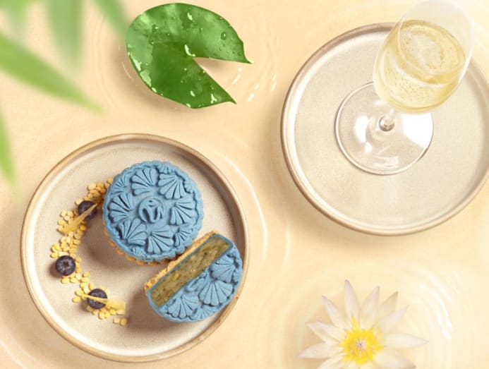 Every year, the chefs under Regent Singapore’s roof come together to create a collection of mooncakes inspired by the cuisines they serve. Italian buffet restaurant Basilico’s rendition is a Seirass Ricotta and Amalfi Lemon number, while upscale bar Manhattan’s version sounds like a literal cocktail-to-confection exercise, with a filling infused with red wine, rooibos tea, mezcal, Laird’s Applejack brandy and fresh citrus. Both are sold at S$53 for a box of four mini mooncakes.