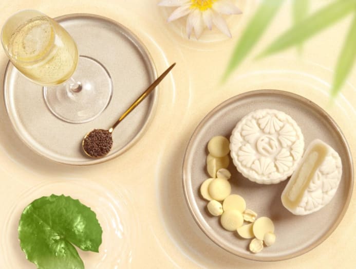Modern European restaurant Table65 at Resorts World Sentosa has created a Pearl Of The Sea Snowskin mooncake featuring a filling of white chocolate ganache enrobed in sencha and white lotus paste. If you think you’ve seen it all in a mooncake, we bet you haven’t seen onyx orbs of caviar worked into a champagne snowskin confection, have you?