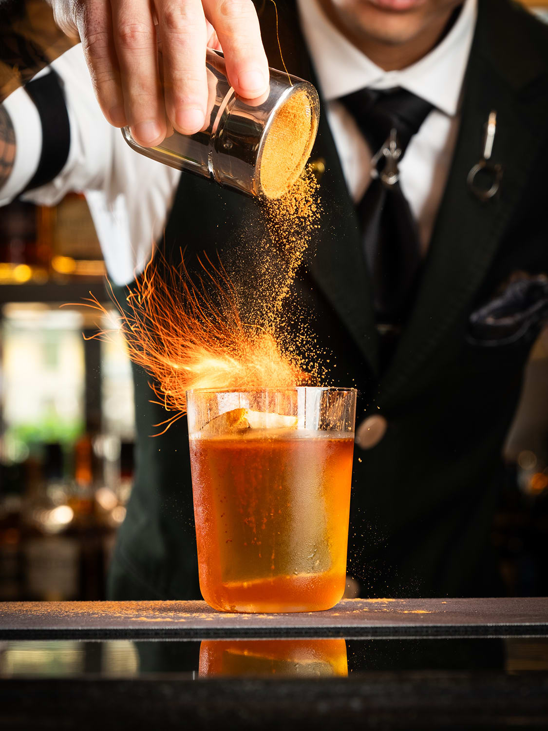 Another bar seduced by the city that never sleeps, Cygnet turns its gaze to New York’s literary legends. Breakfast At Tiffany’s reimagines the classic Aviation with Earl Grey tea and lavender in place of creme de violette, crafting a light, floral tipple fit for brunch. Here Is New York pays tribute to EB White and Roger Angell’s love letter to the city with a spiced apple pie you can drink. But the most faithful nod has to be The Godfather: Bourbon cask wood chips lend a smoky whisper, sherry brings a hint of salinity, and chocolate bitters pull it all together for an impactful finish.