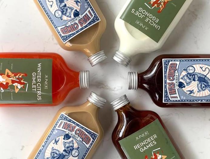 To really get into the holiday mood with a drink or three, there’s Junior The Pocket Bar’s collection of Christmas cocktails, which are now available in 250ml bottles.