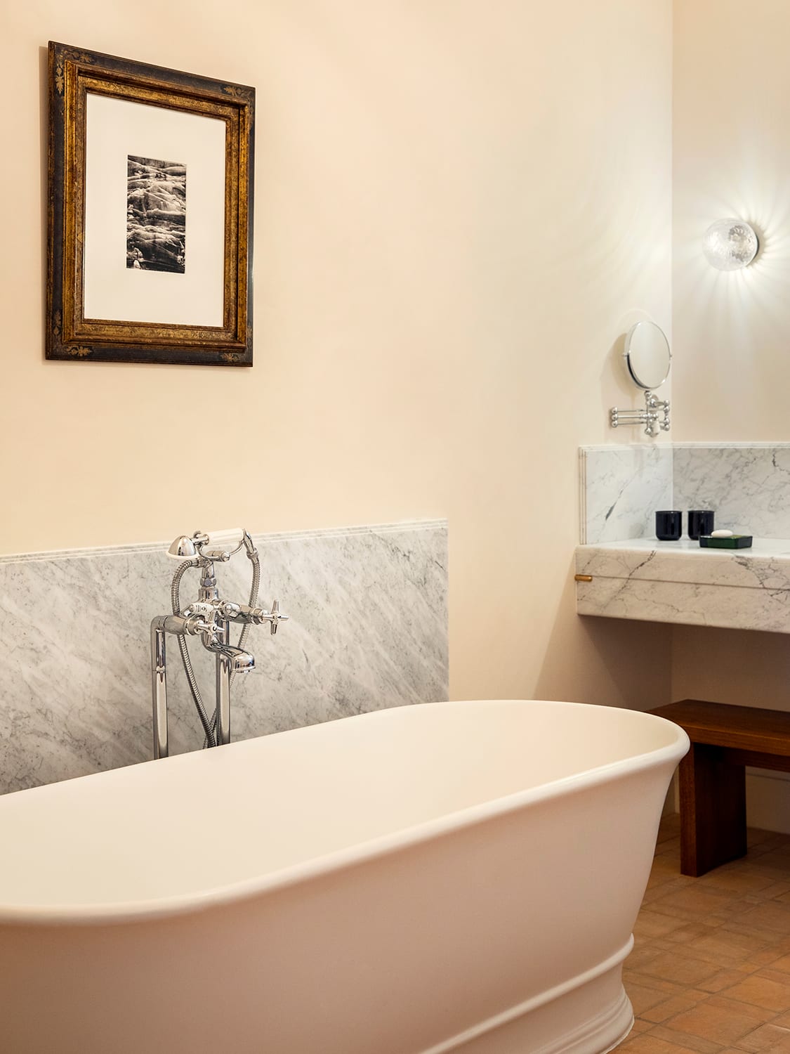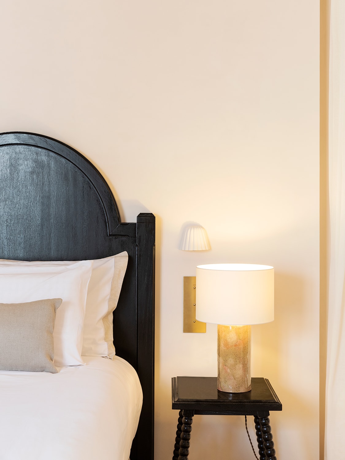 The rest of the hotel has been restored with a considered design approach that’s a study in elegant restraint. Crafted by interior design studio Festen in collaboration with architecture studio Gras Reynes, they carefully retain the lovely bones of the historic house while also imbuing it with a fresh character. Every piece, like the hand-blown glass lamps by Mallorcan brand Gordiola, accentuate the pared-back beauty of this space. With just a handful of bright rooms and relaxed shared spaces, staying at Portella feels like staying in an artistic friend’s villa rather than a boutique hotel. Isn’t that the kind of hotel we’re all looking for?