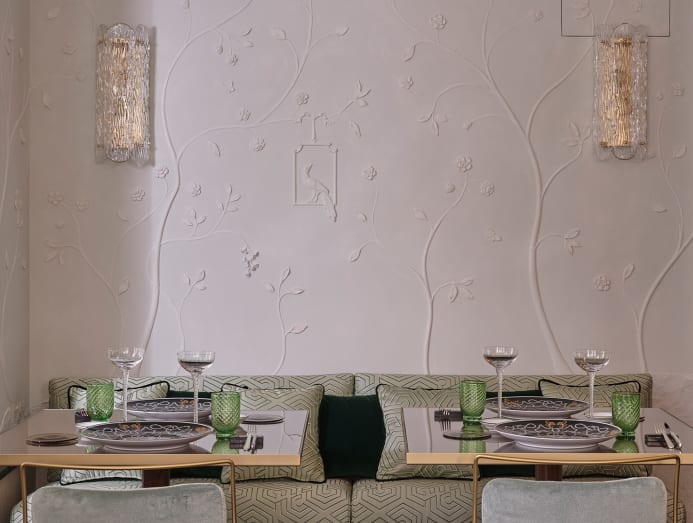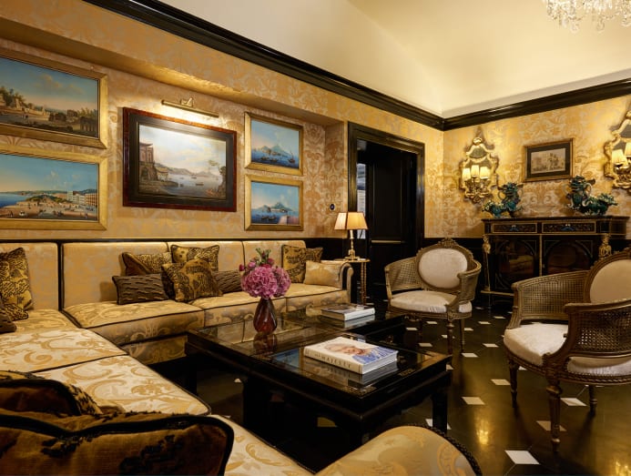 Illuminated by Venini chandeliers, the lobby features intimate seating nooks where one can examine the myriad objets d’art peppered throughout the space. To say the hotel itself was handmade is not an exaggeration — from the Murano glass pieces down to the Ginori 1735 tableware at the restaurant, every piece was touched by hand.