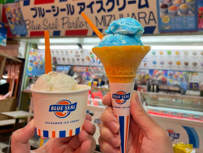 Blue Seal ice cream, with its slogan “Born in America, Raised in Okinawa” is another brand that was introduced by the US military. It started as a company producing dairy products for American military bases in Okinawa, to boost the morale of the troops and give them a familiar taste of home. While initially exclusively available only on US military bases, Blue Seal later made its ice cream available to the Okinawan public.