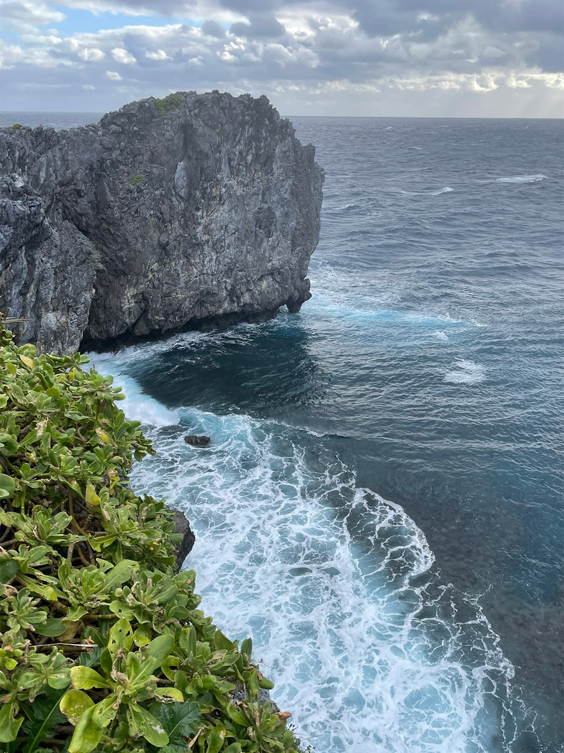 The third cape I’d recommend visiting is Cape Zanpa, on the western coast of central Okinawa, with its steep cliffs, volcanic rock formations, and crashing waves that create a dramatic landscape.