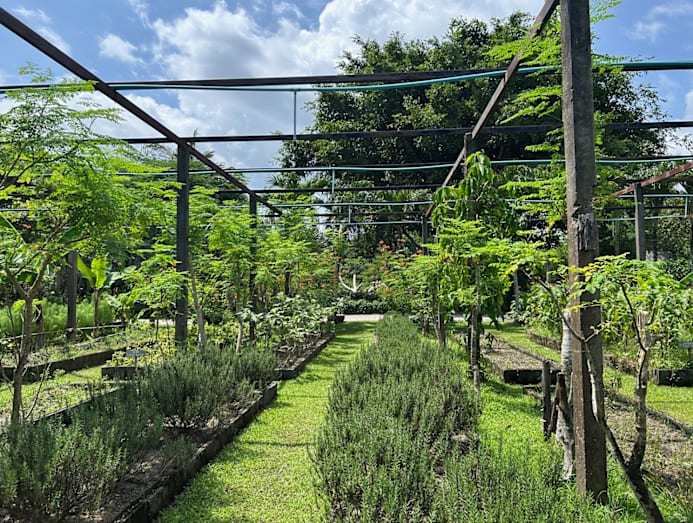 Snorkelling wasn’t recommended during June’s monsoon season, though Harris enthused about the wildlife we’d see in calmer months. Instead, we took the children to Pru Jampa for an organic farm visit. Set within the nearby Tri Vananda residential development – also by Trisara’s owner, Montara Hospitality – it supplies produce to Trisara’s farm-to-table restaurant Jampa, which holds a Michelin Green Star.