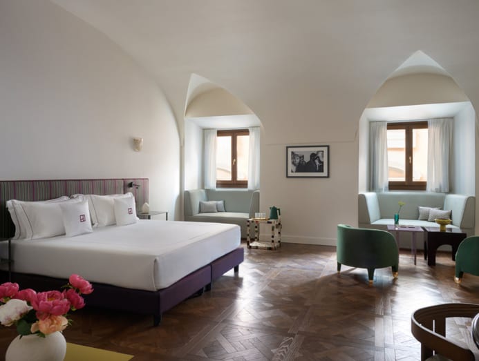 Originally built for a papal secretary then turned into the headquarters of Colegio Nazareno, the 16th century structure has witnessed plenty of historic events, and its new era invites you to write your own story, too. Pass the stone arch and you’re ushered into a world of impossibly high ceilings, lavish frescos, sumptuous colour combinations, and more.