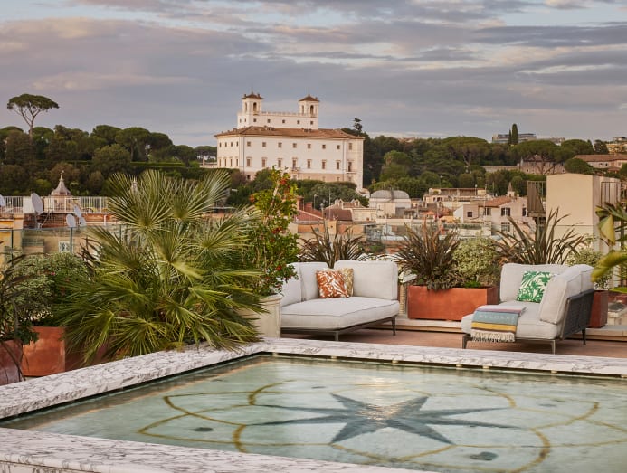 One of the biggest draws is its (literal) elevated position, making it easy to take in landmarks such as the Vatican and Il Vittoriano. You don’t even have to stay the night to get a glimpse of the sweeping views: the hotel’s fine dining restaurant, La Terrazza, and the more casual outlet, Il Giardino, are the best vantage points to gaze at Rome's golden-hued landscape.