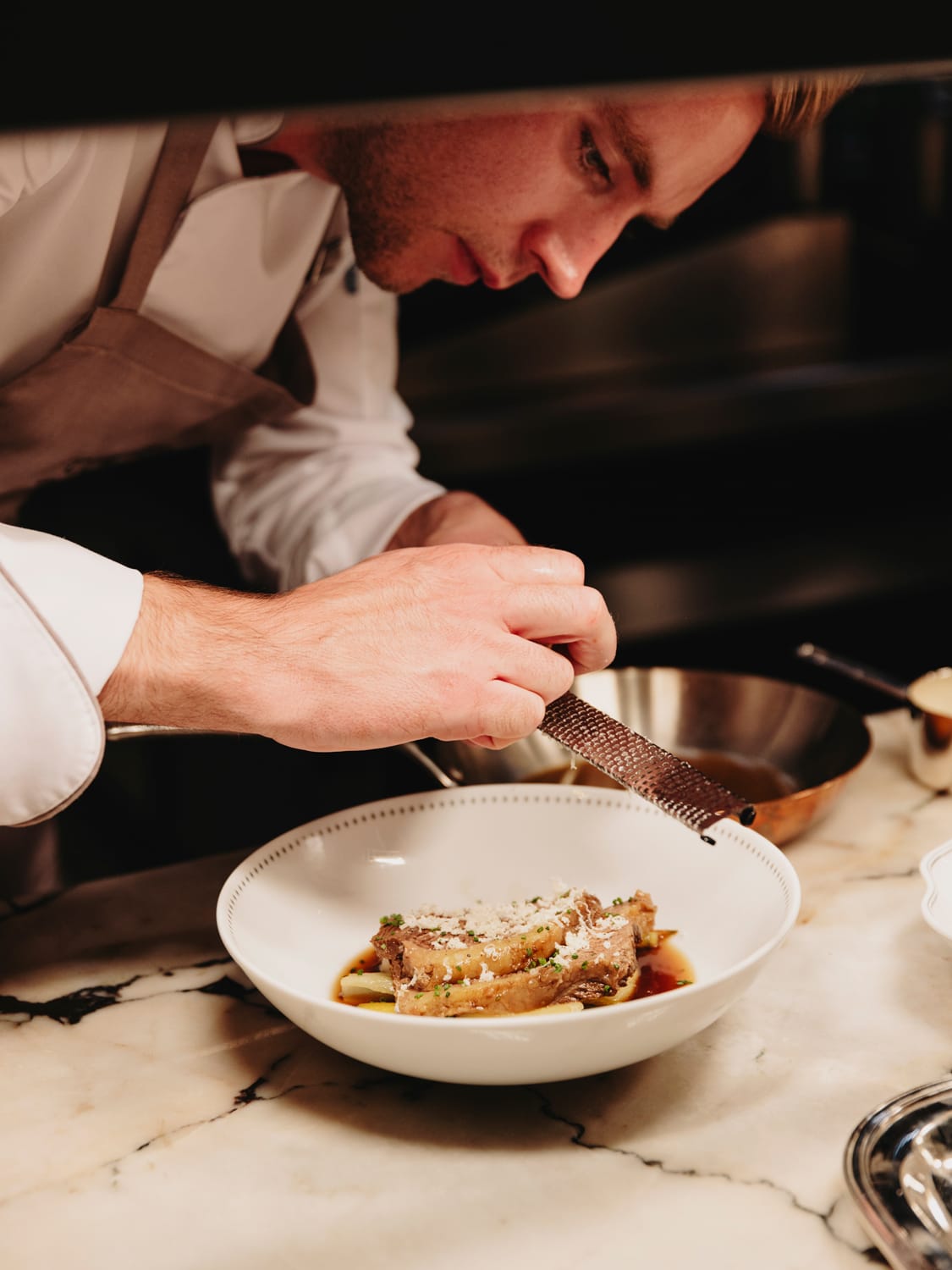 The kitchen collaborates with local farms and places a strong emphasis on using seasonal and ultra-fresh produce. Ingredients such as fish are sourced from Bavarian producer Aumuhle, while meats are procured from Tagyu and Tremmel. Organic vegetables meanwhile are obtained from Munich's Kinara farm. In concert, the kitchens put out banging dishes that would undoubtedly place the restaurant on the German dining map.