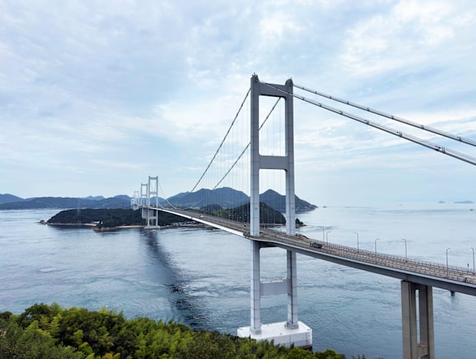 At 70km long, the Honshu-Shikoku Bridge Expressway – or more affectionately known as the Shimanami Kaido – connects Japan's main island of Honshu, starting in Onomichi City in Hiroshima Prefecture, to the island of Shikoku, ending in Imabari City, Ehime Prefecture.